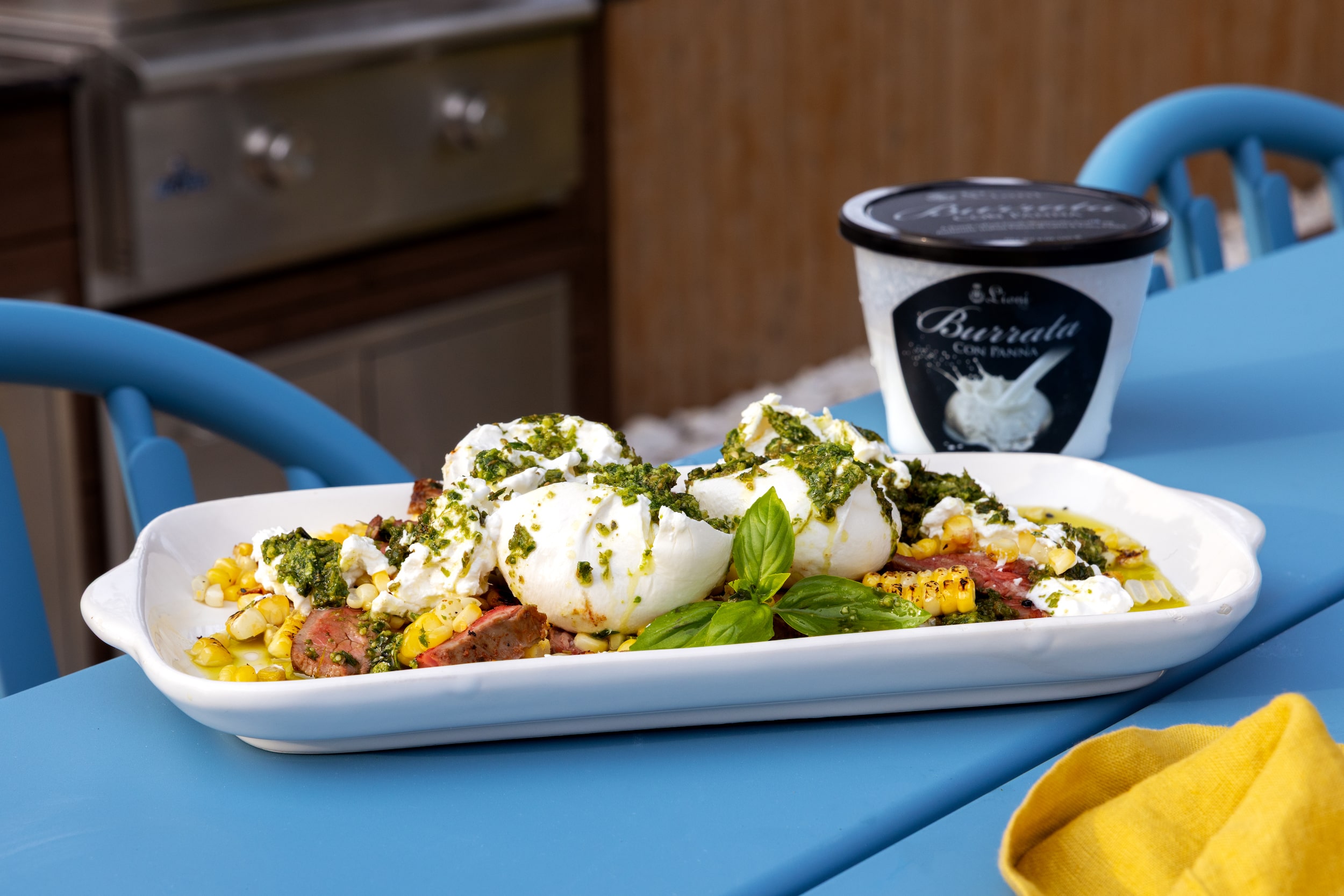 That final combo… steak juices mingling with creamy burrata cheese, charred corn adding that sweet crunch, pesto cutting through with freshness. It’s the kind of plate that doesn’t just taste good — it feels like the season itself.